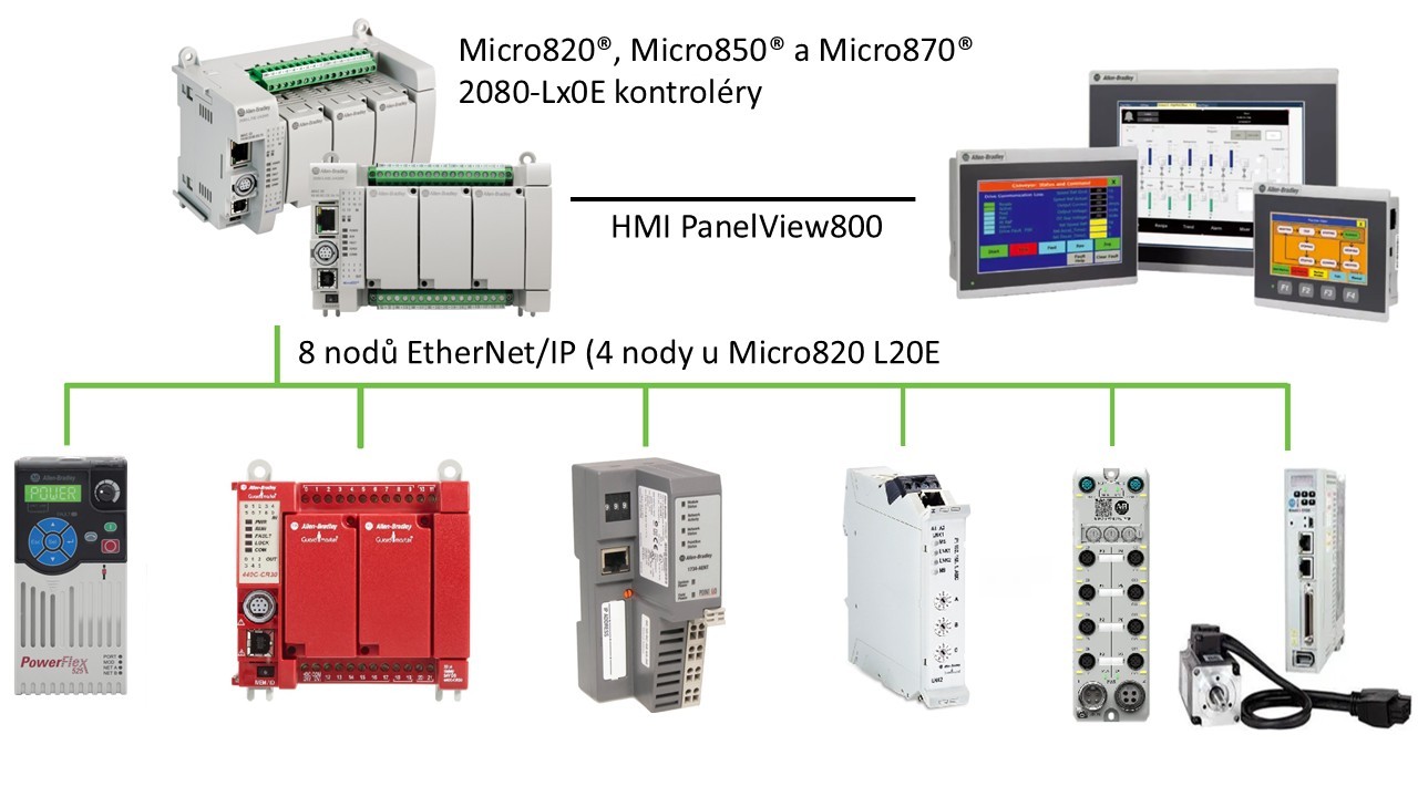 - EtherNet/IP Class 1: L20E: ano (až 4 uzly); LC20: nepodporuje
